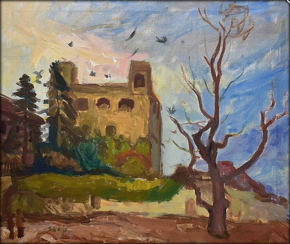 SU586 SÁROSPATAKI RÁKÓCZI-VÁR VERES-BÁSTYA olaj, vászon 50x60 cm. 1960 körül. // Sandiantik Kft 2026.03..