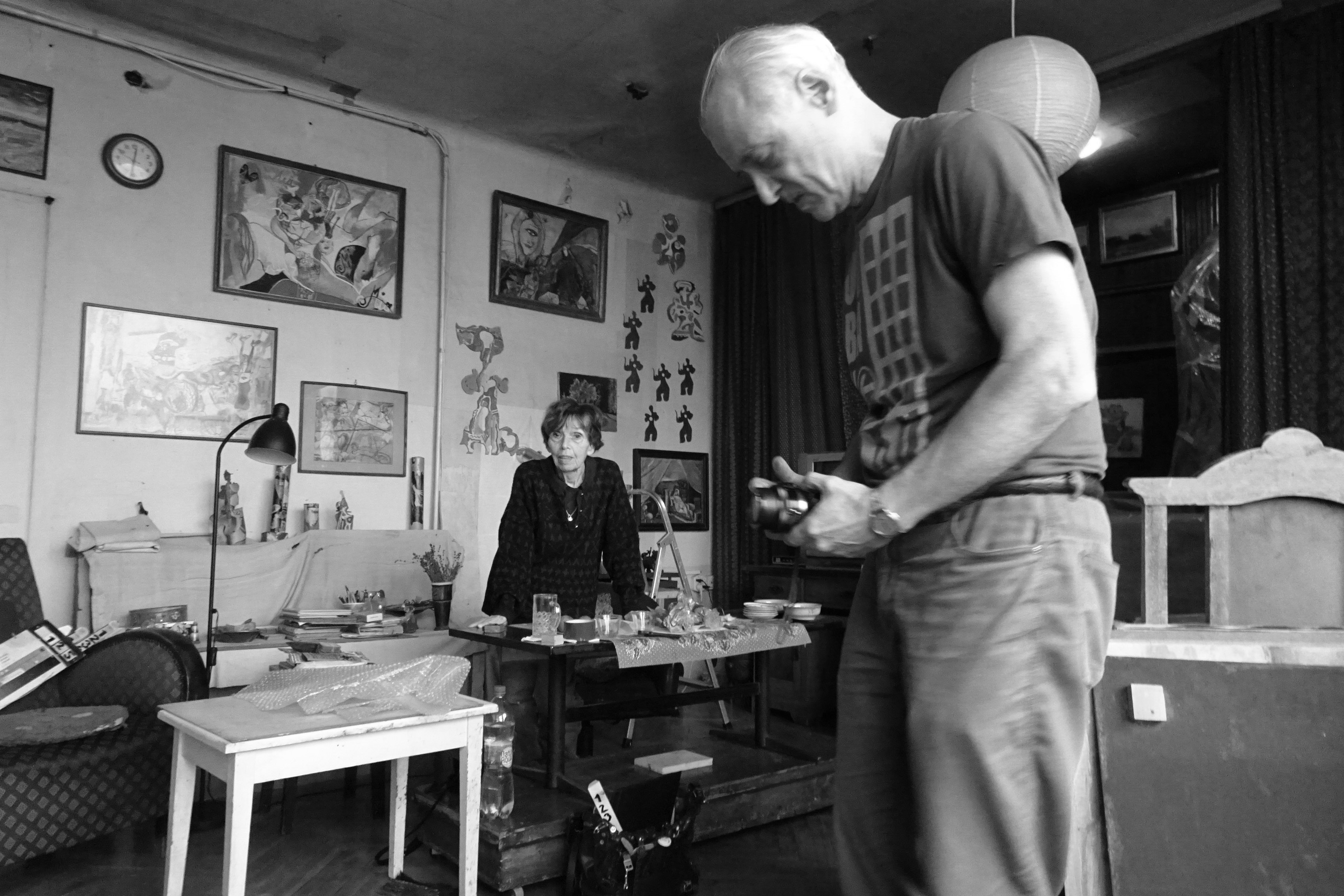 S. műterme, S. Gyuláné, Cora Erzsébet és fia: S. János fotó: Váli D., 2017.10.23.