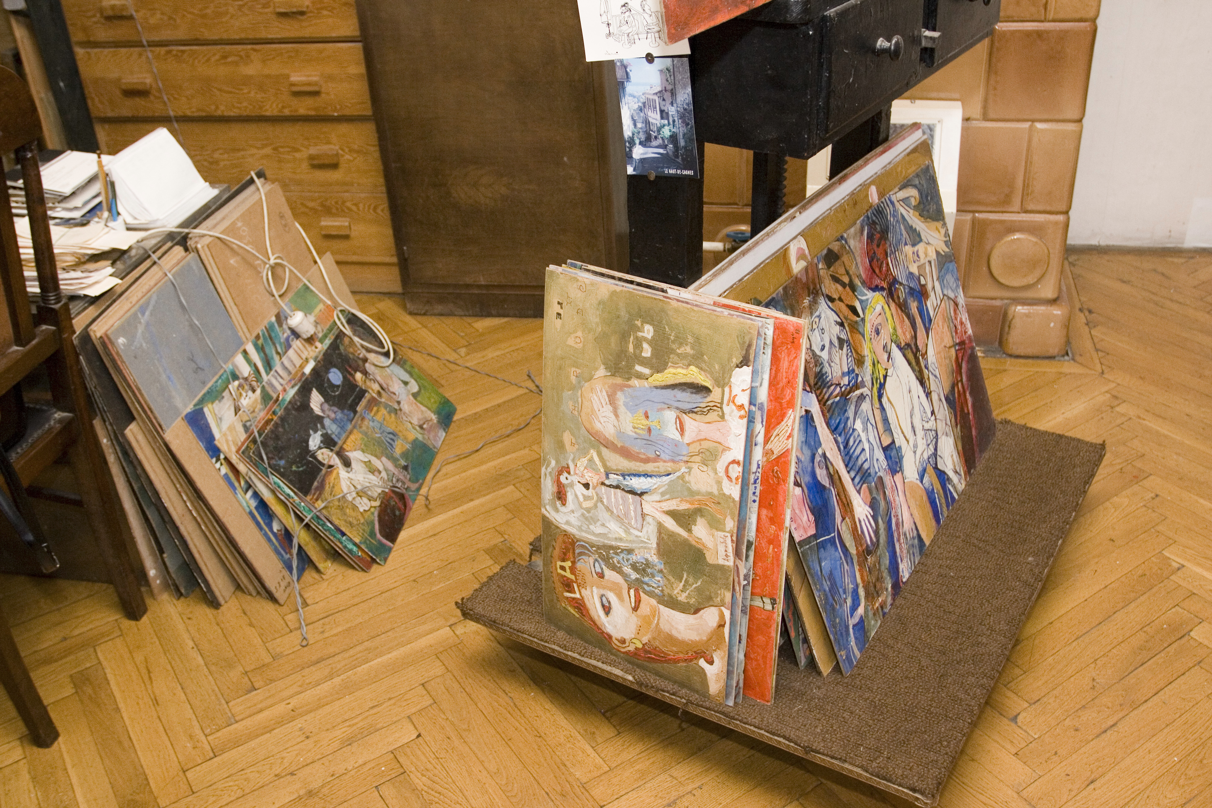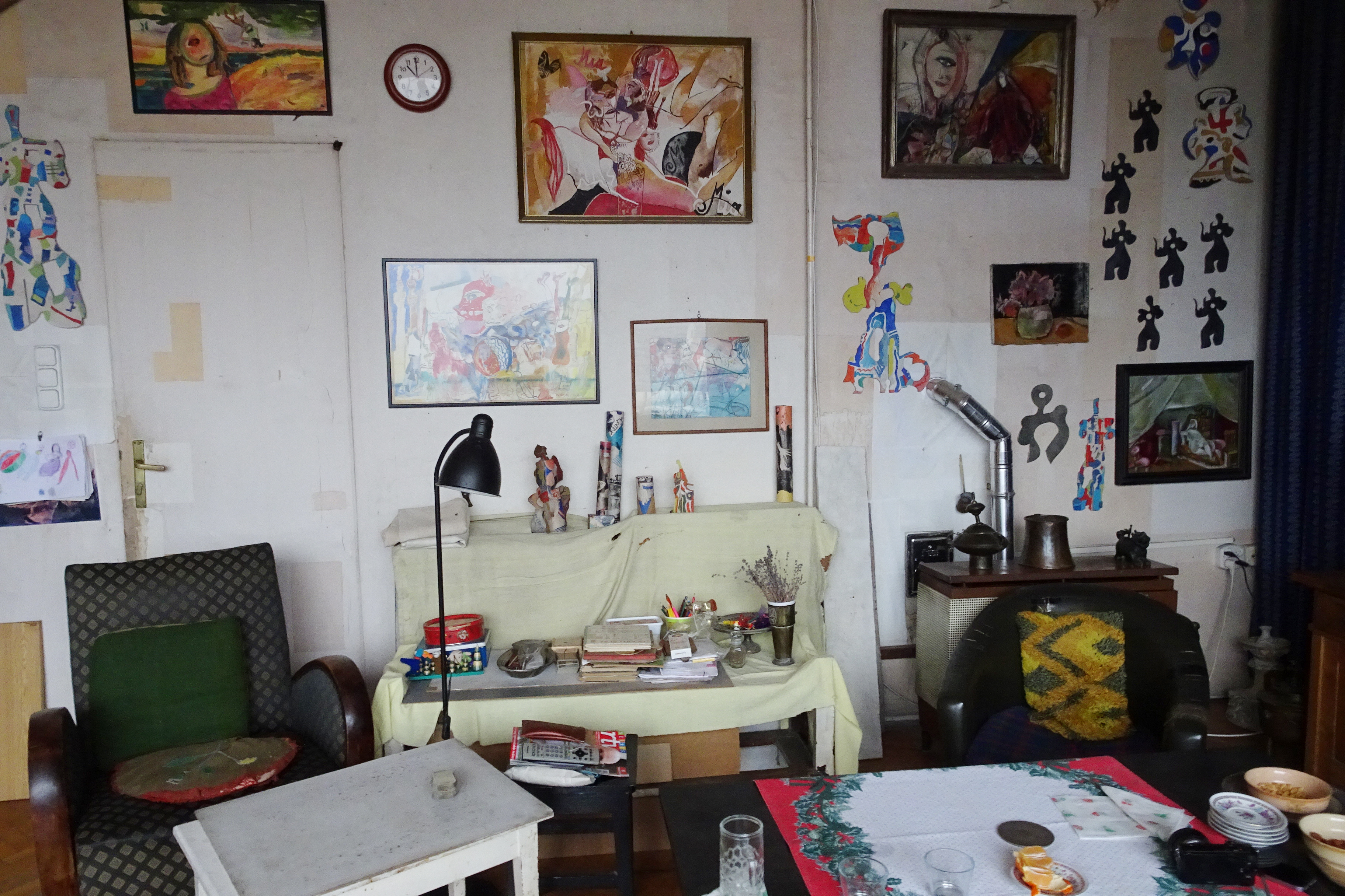 műterem erdeti kollázstapétával, 2008 fotó: Körmendi Anna, ő adta 2018.08.