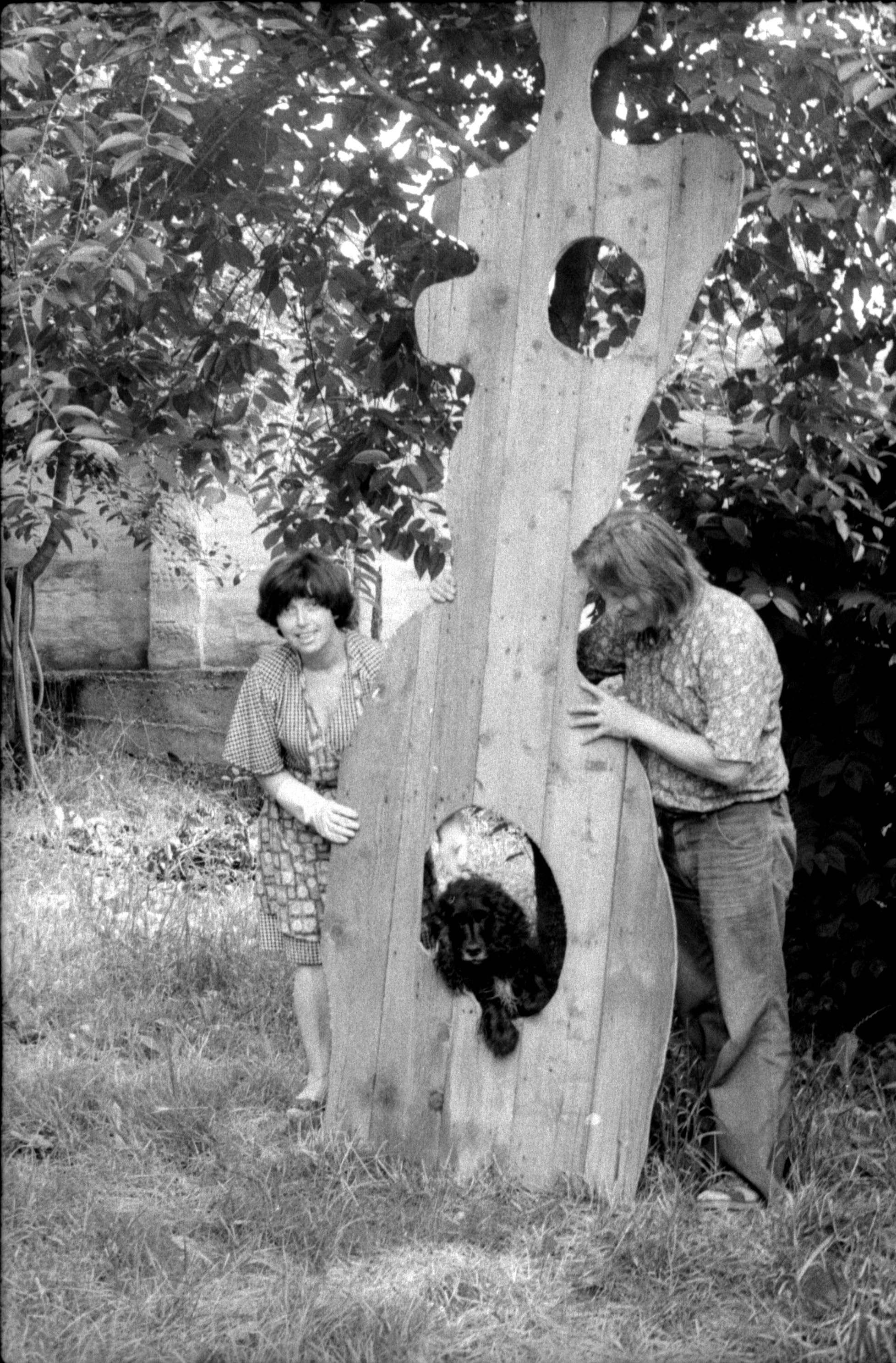 szoborral a kertben SGY-né és Sugár Gy. 1975., SJ. fotó, ő küldte 2018.04.