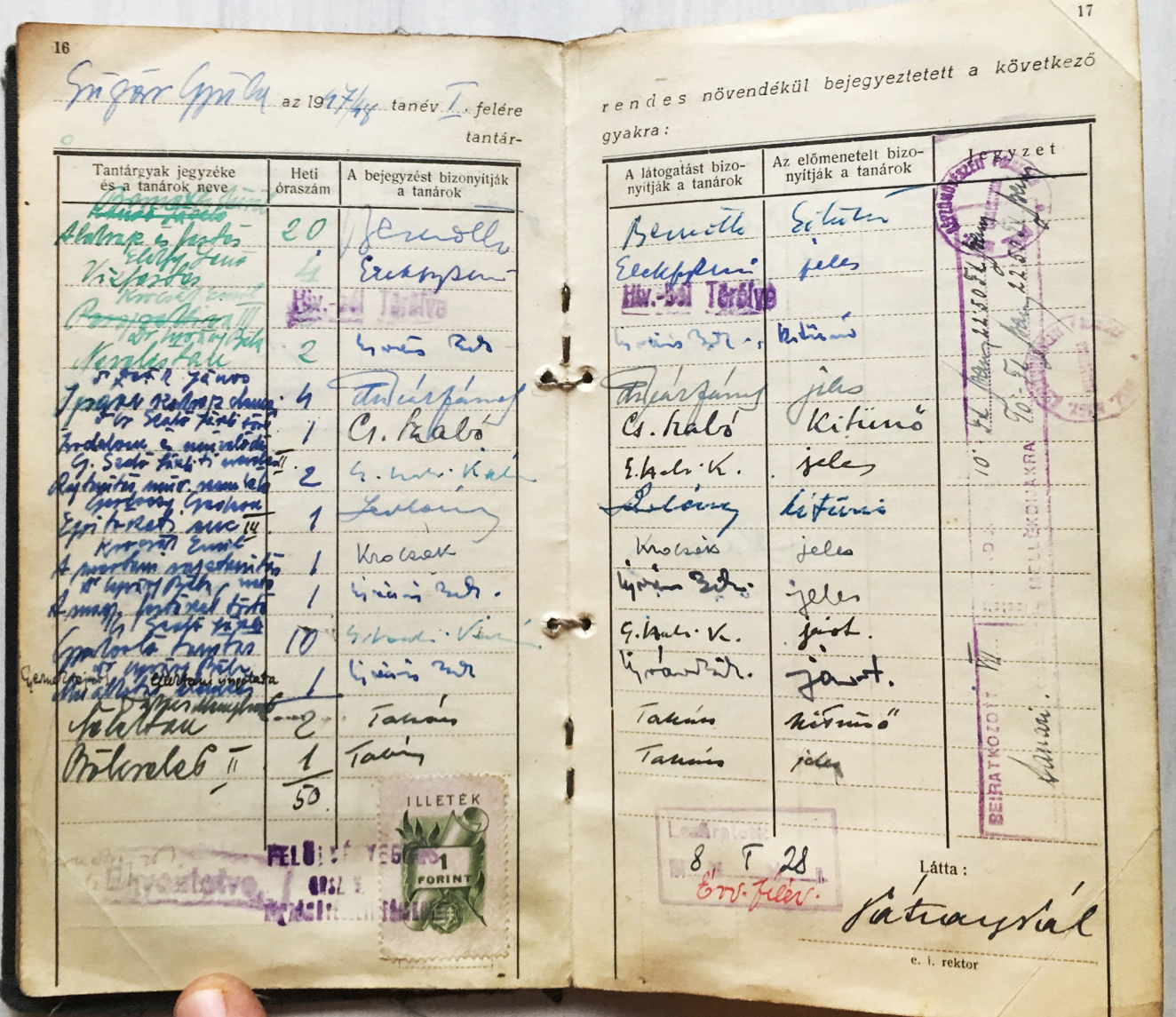 ASU009 Főiskolai bizonyítvány első oldal 1944. okt., S. János küldte 2017.10.