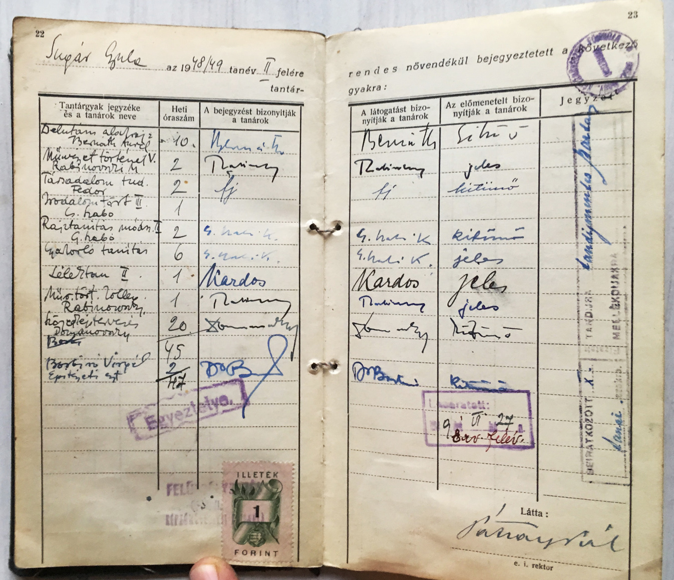 ASU014 Főiskolai bizonyítvány 1948-49 II. félév, S. János küldte 2017.10.