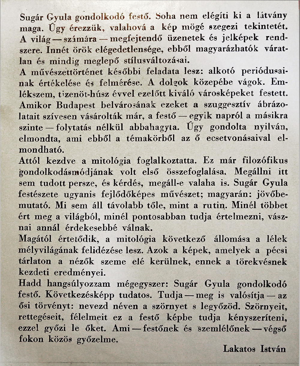 Dombrovszky Ninette: Sugár Gyula, katalógusszöveg, Budapest Galéria, 1993