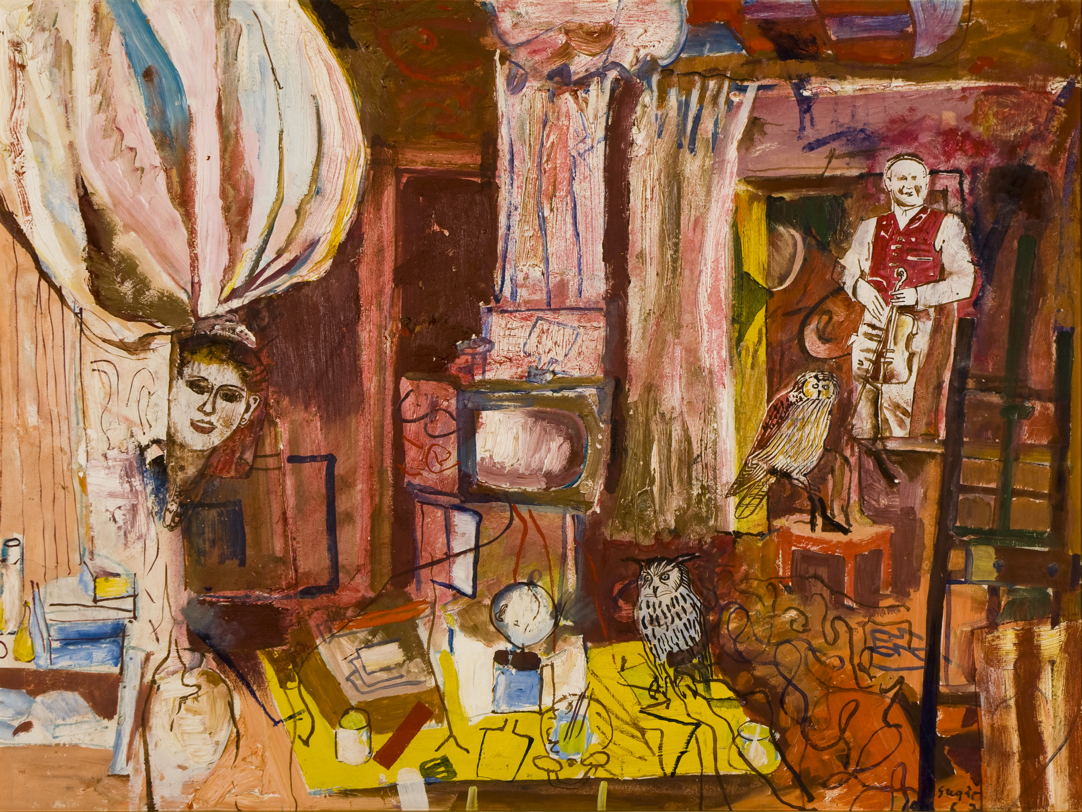 SU580 Bagoly olaj, farost, 60x80 cm., 1972 // Perce Gal. aukció 2015.12..