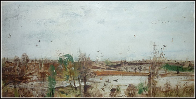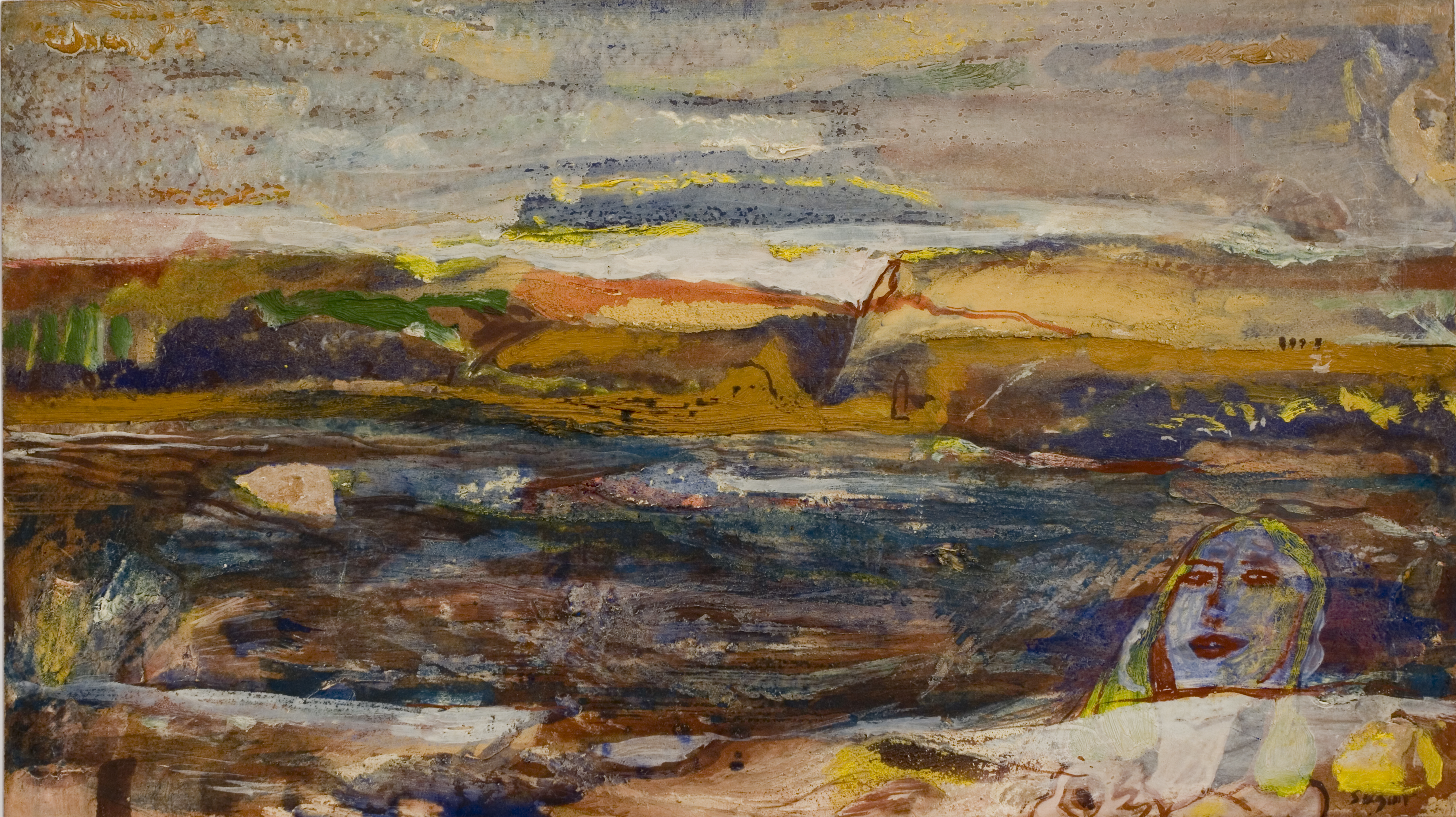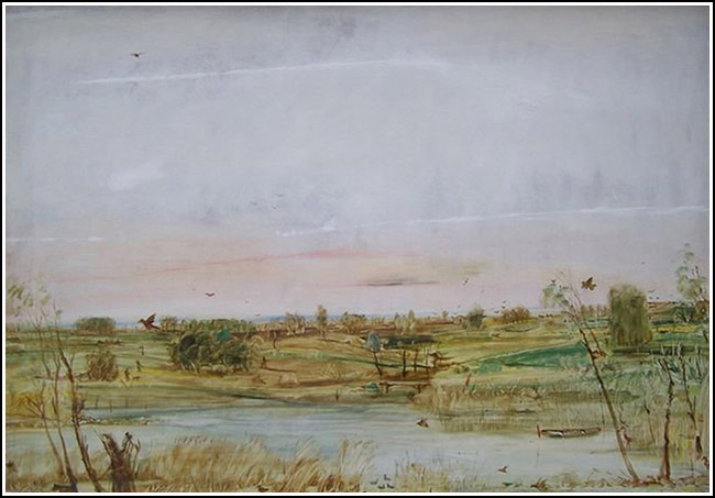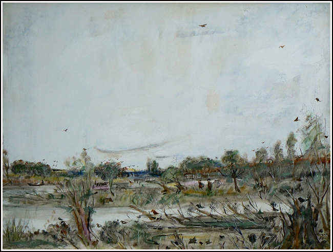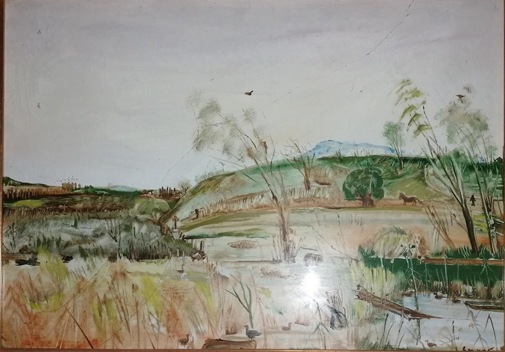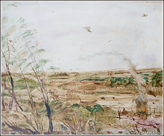 SU030 Vizes táj [tulaj 2017.11. Válinál beírva: ID:1759]. olaj, farost 90x120 cm. késői munka