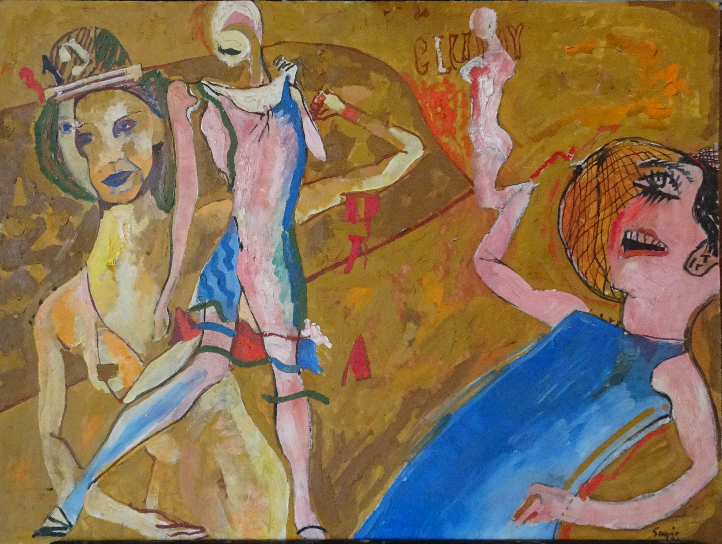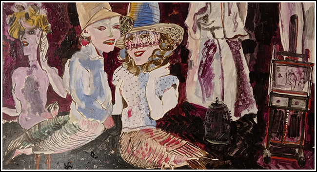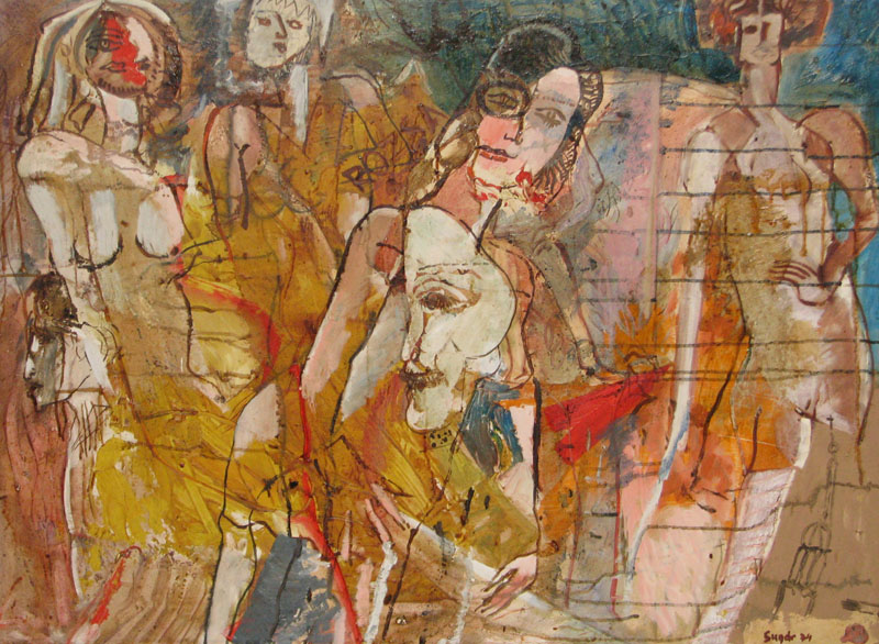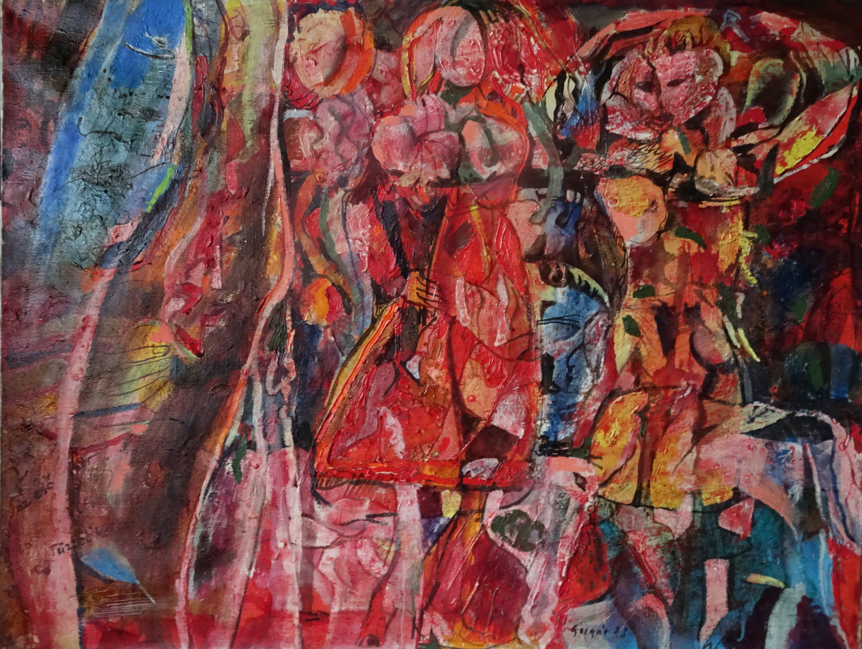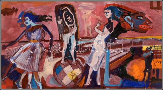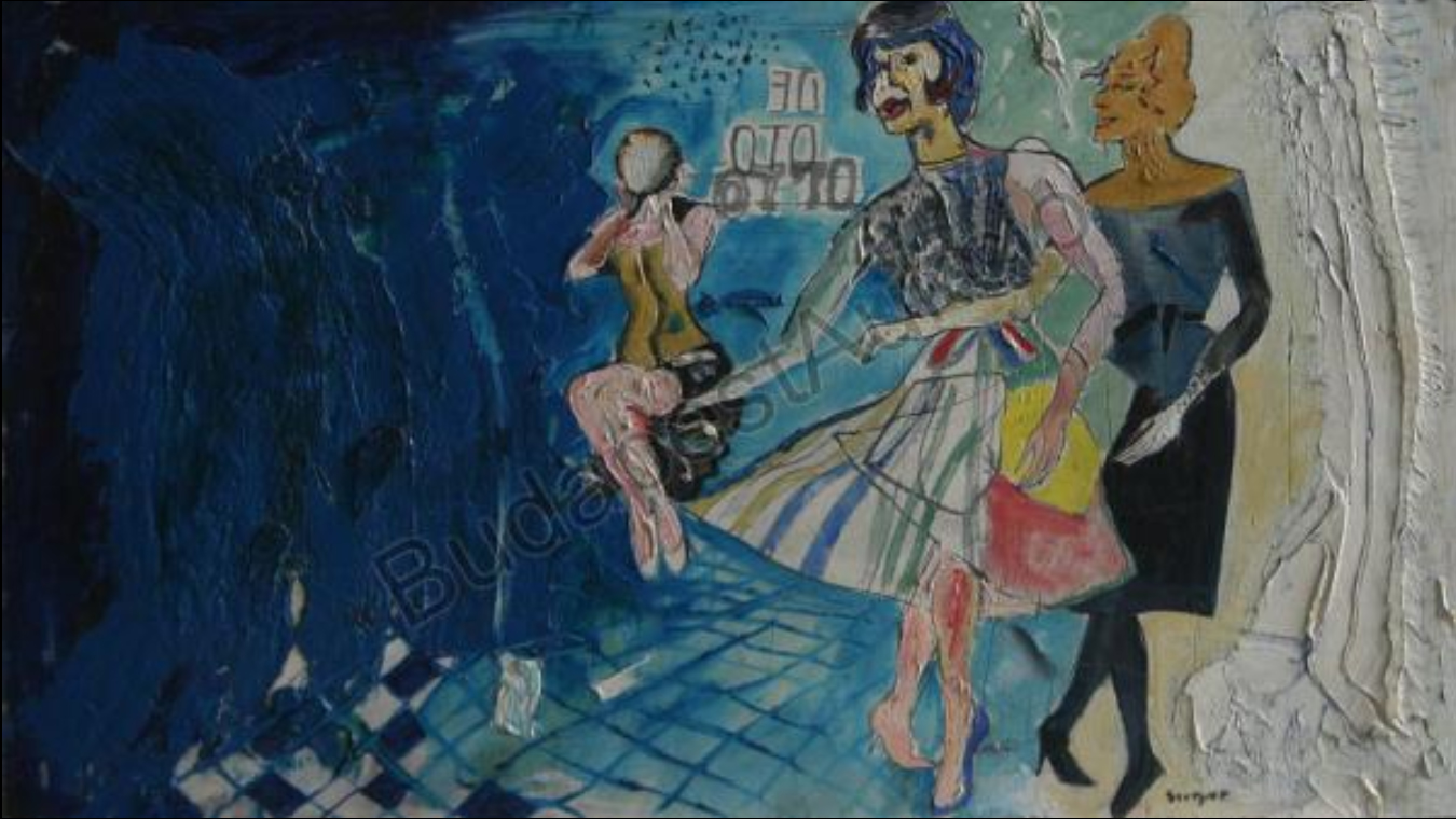 SU5489 HÖLGYEK 1973 60x80cm,olaj-farost //Savaria Gal.