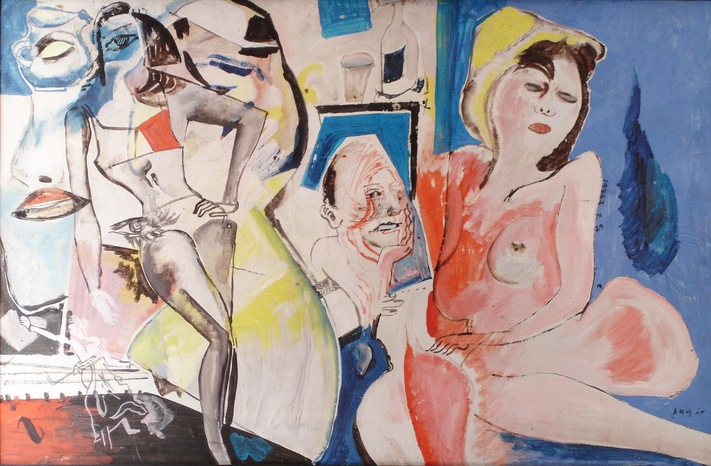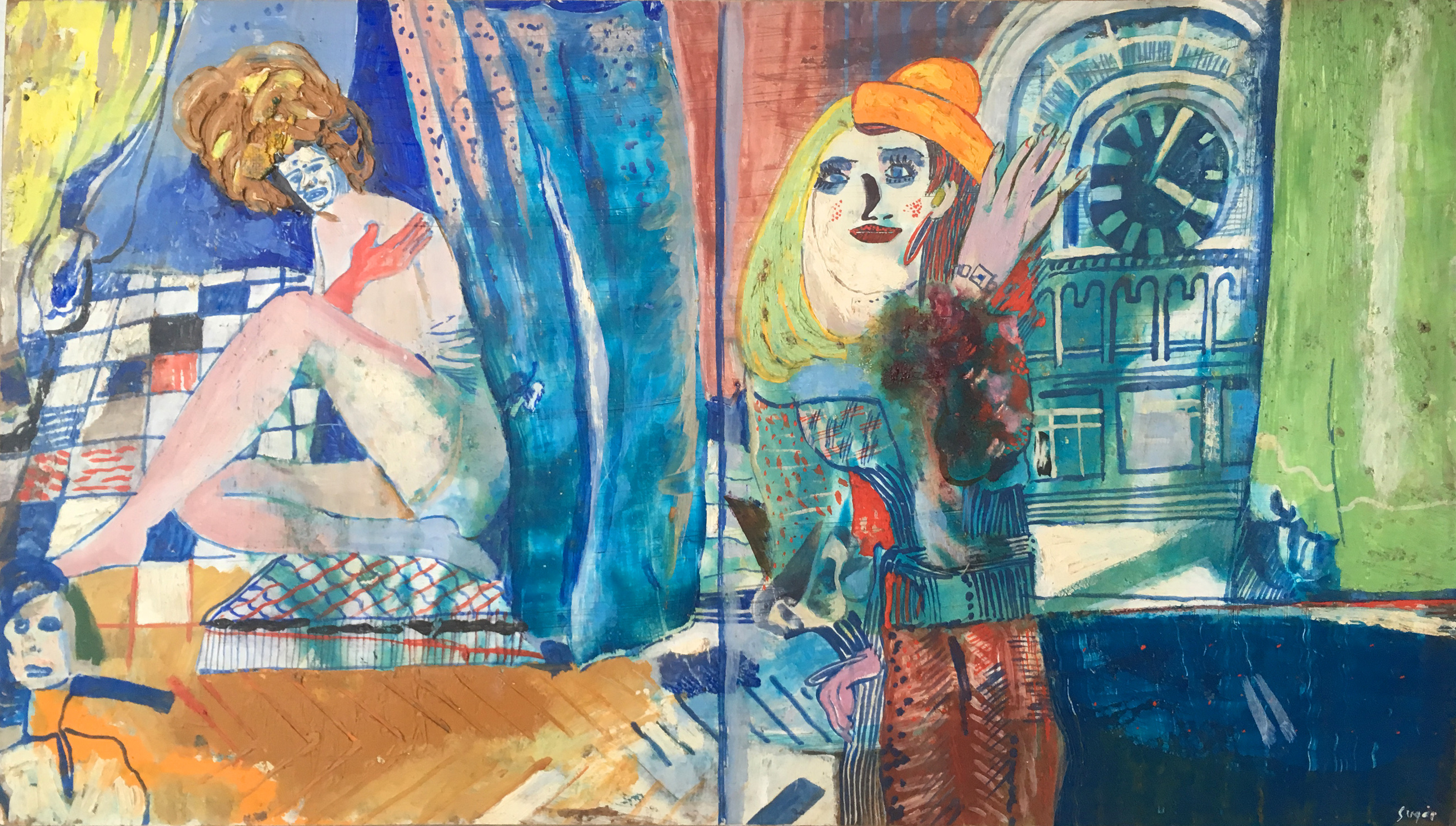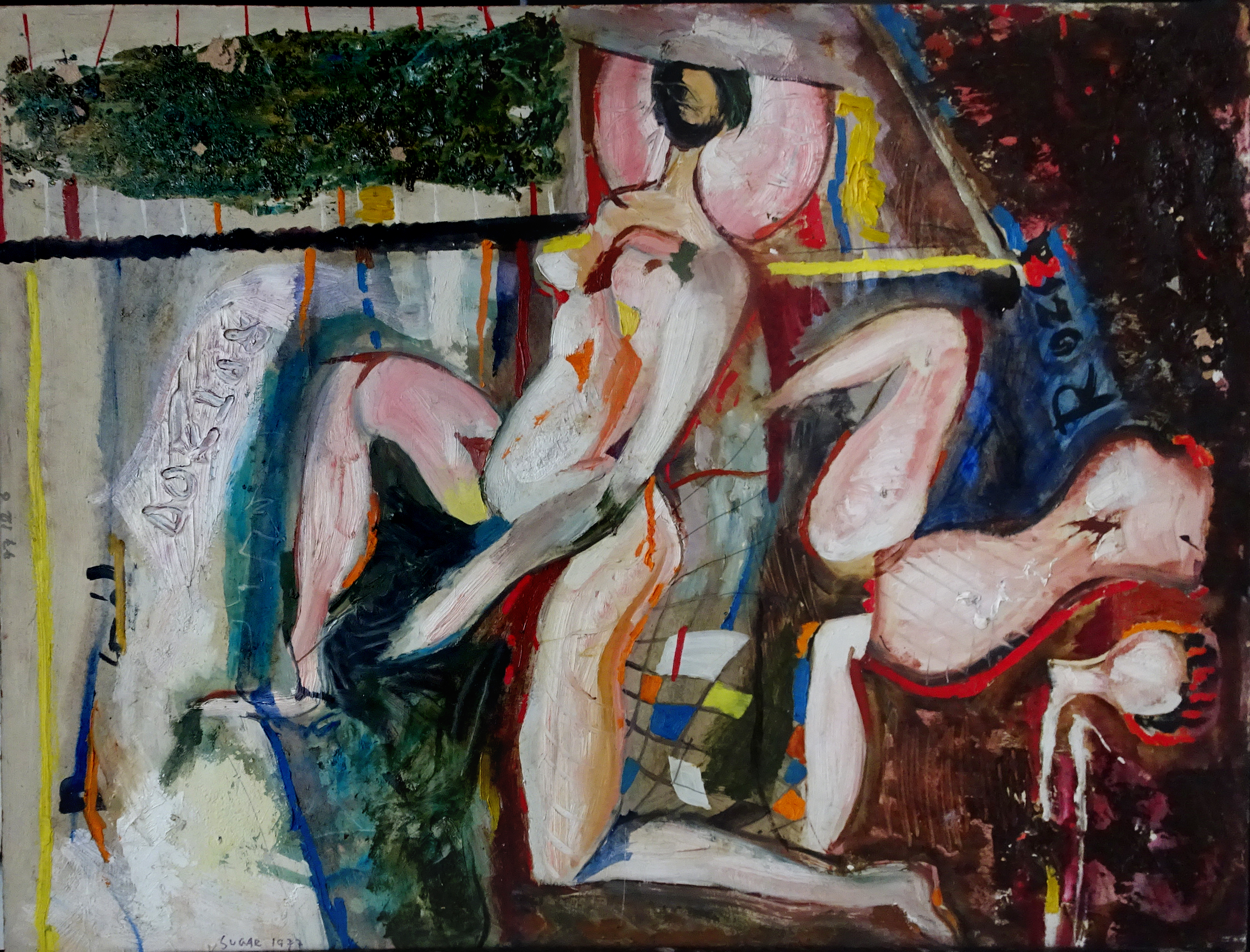 SU5489 HÖLGYEK 1973 60x80cm,olaj-farost //Savaria Gal.