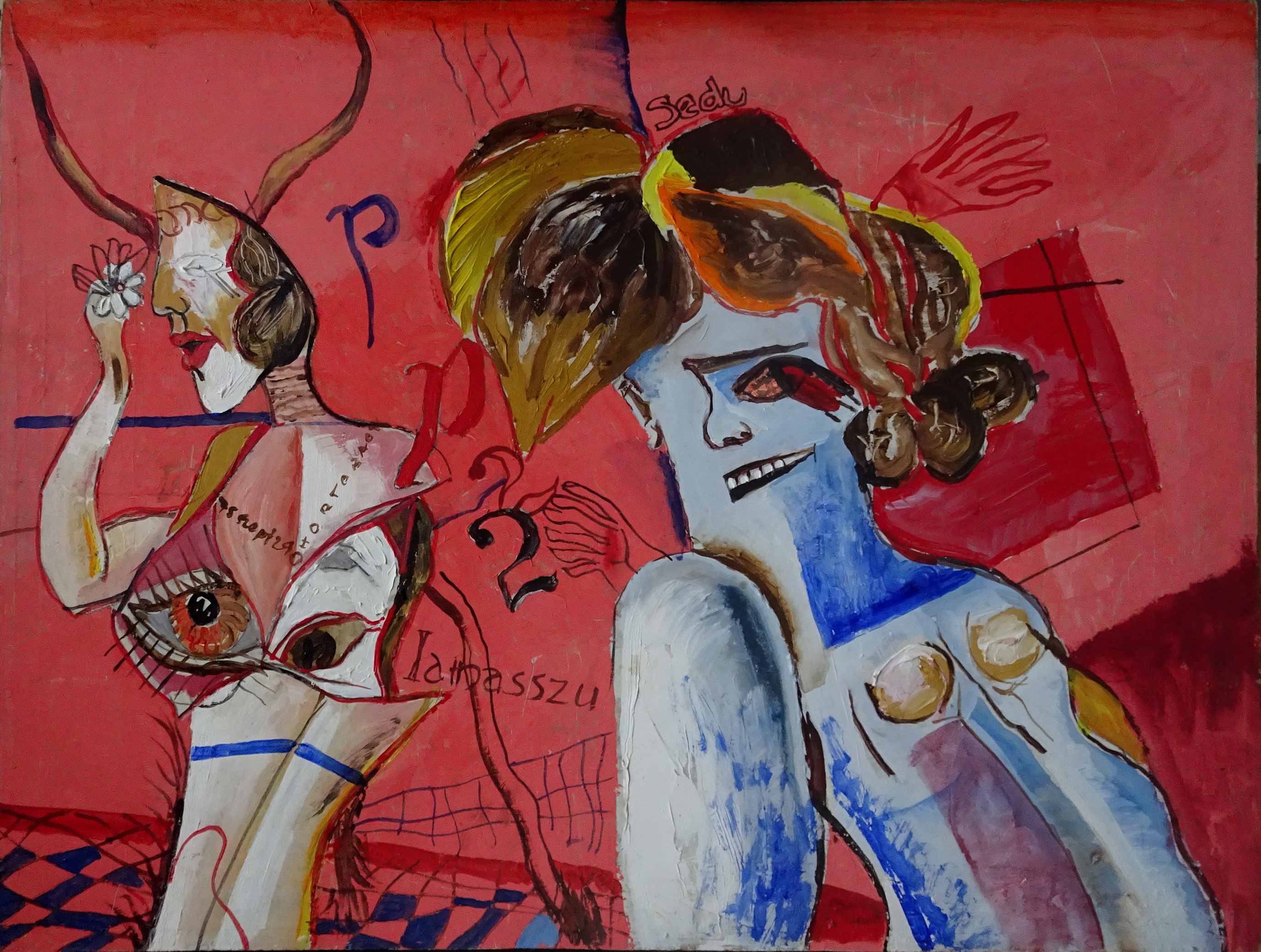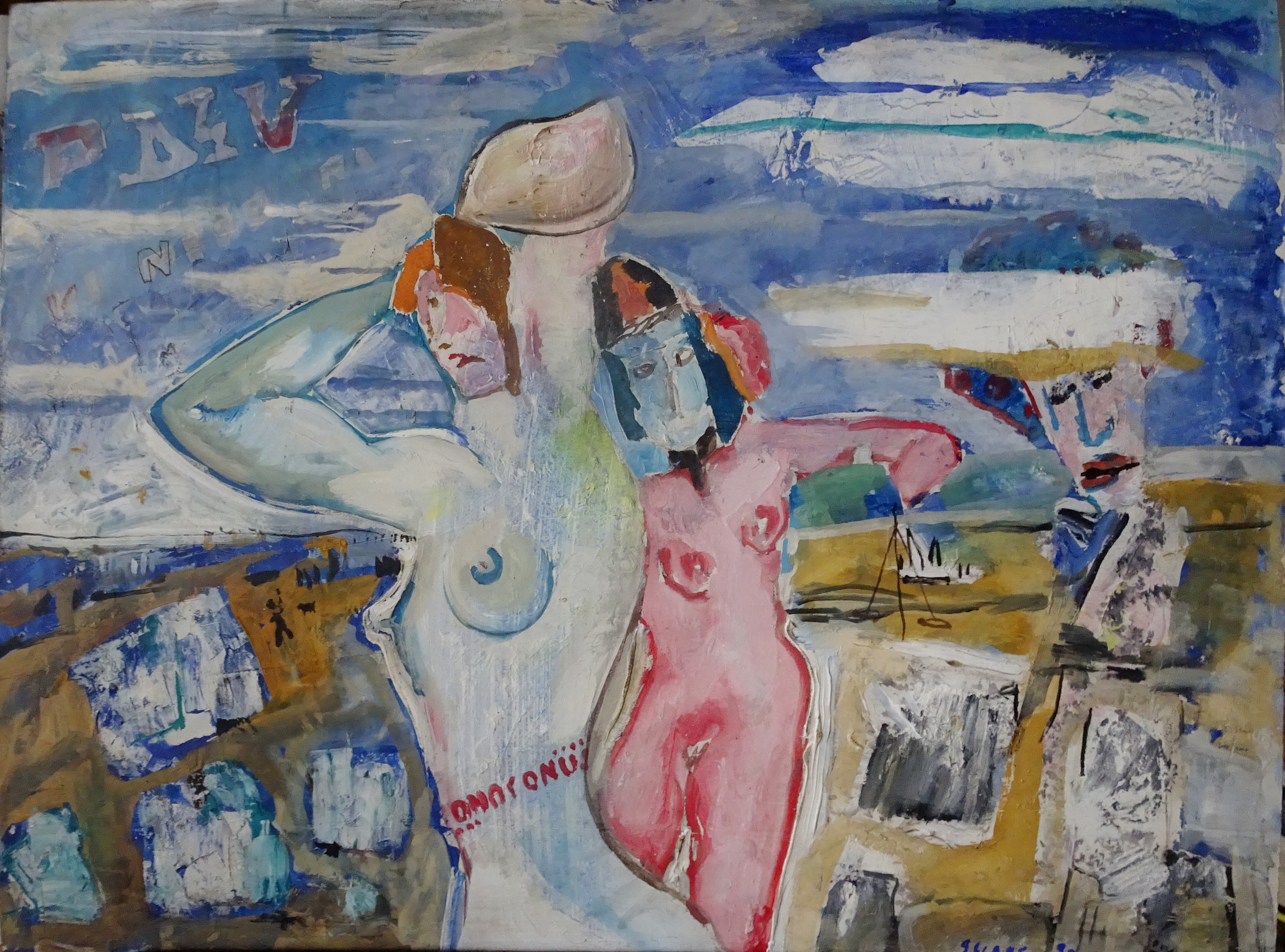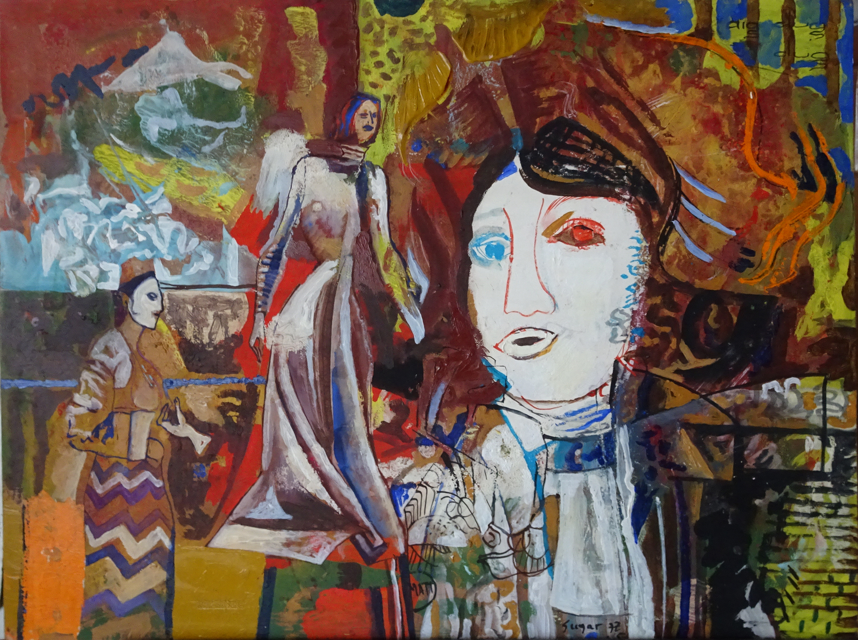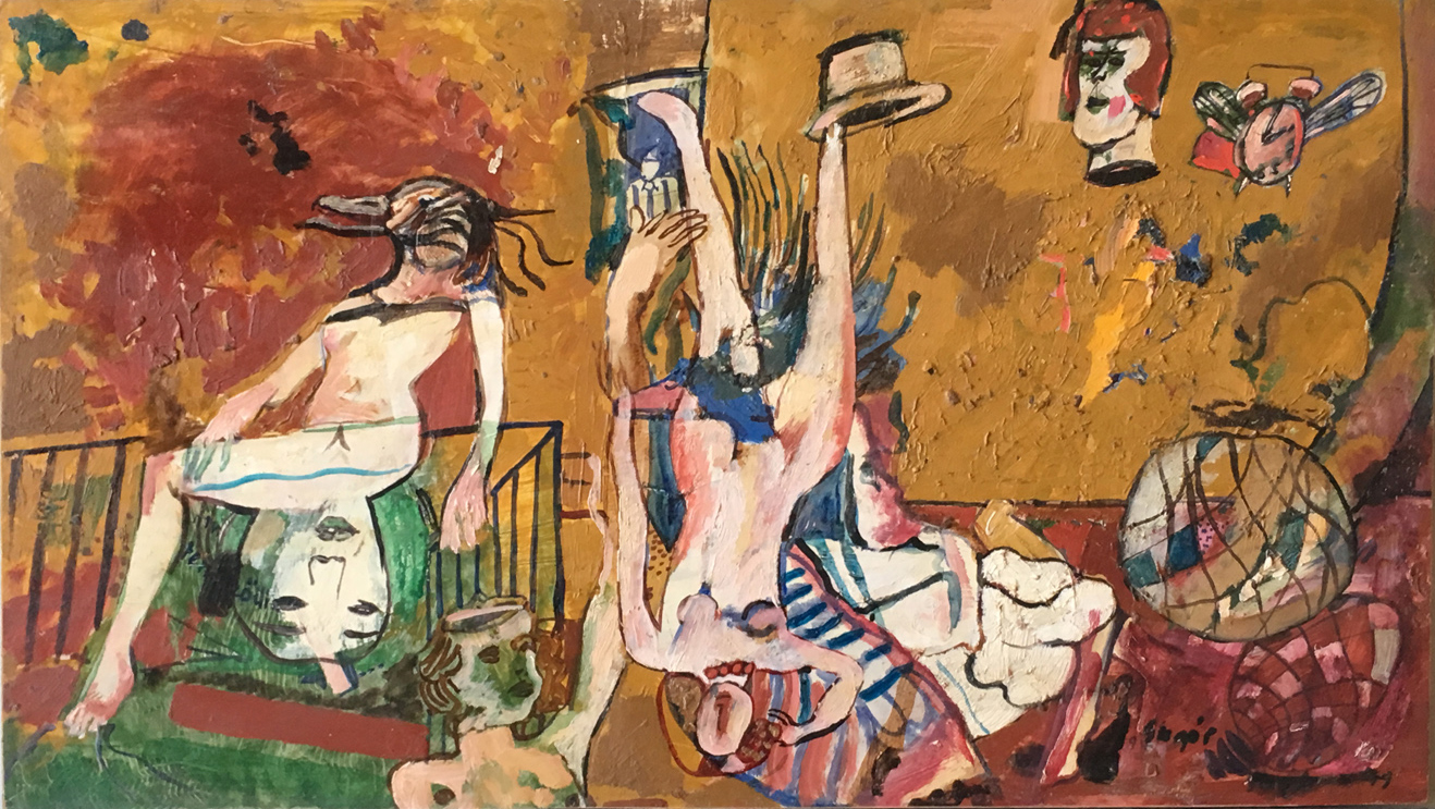 SU5489 HÖLGYEK 1973 60x80cm,olaj-farost //Savaria Gal.