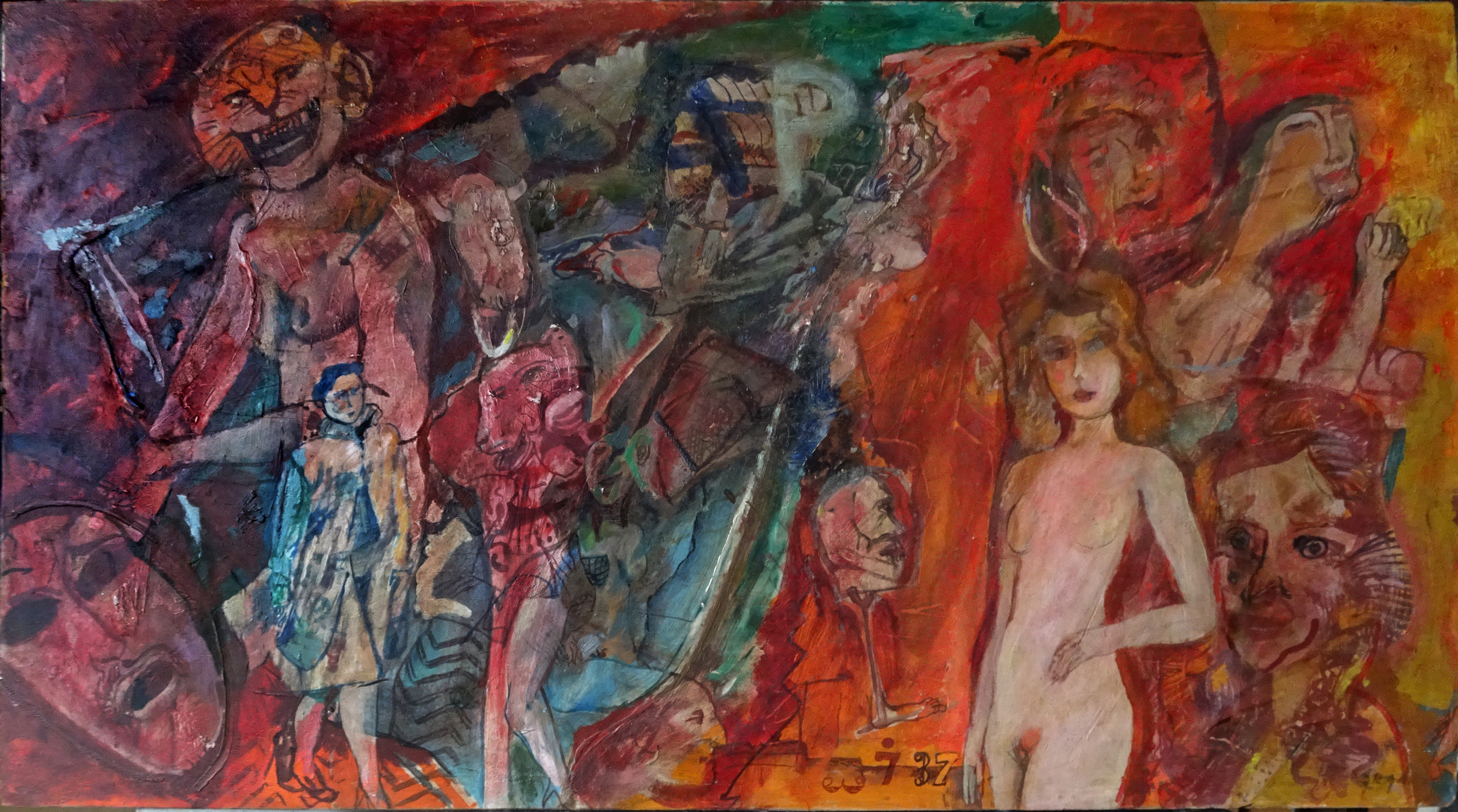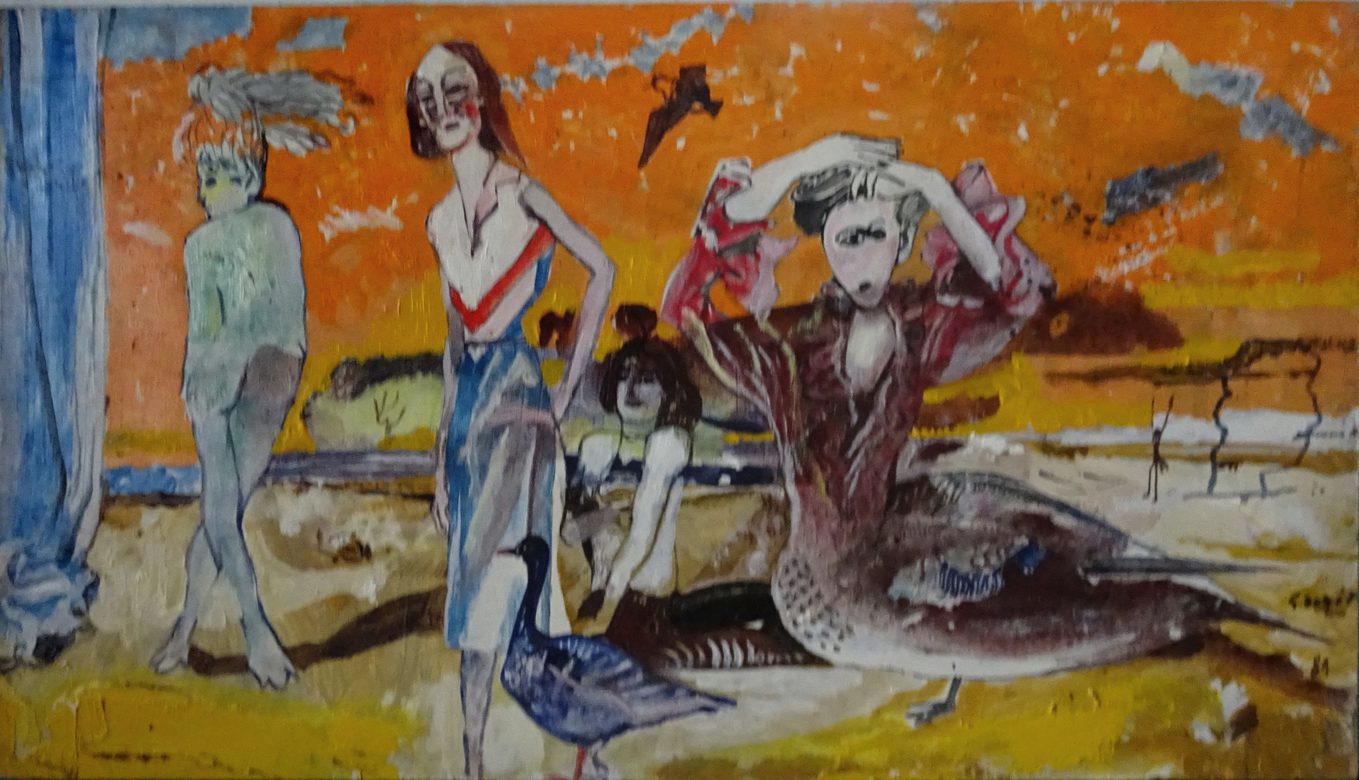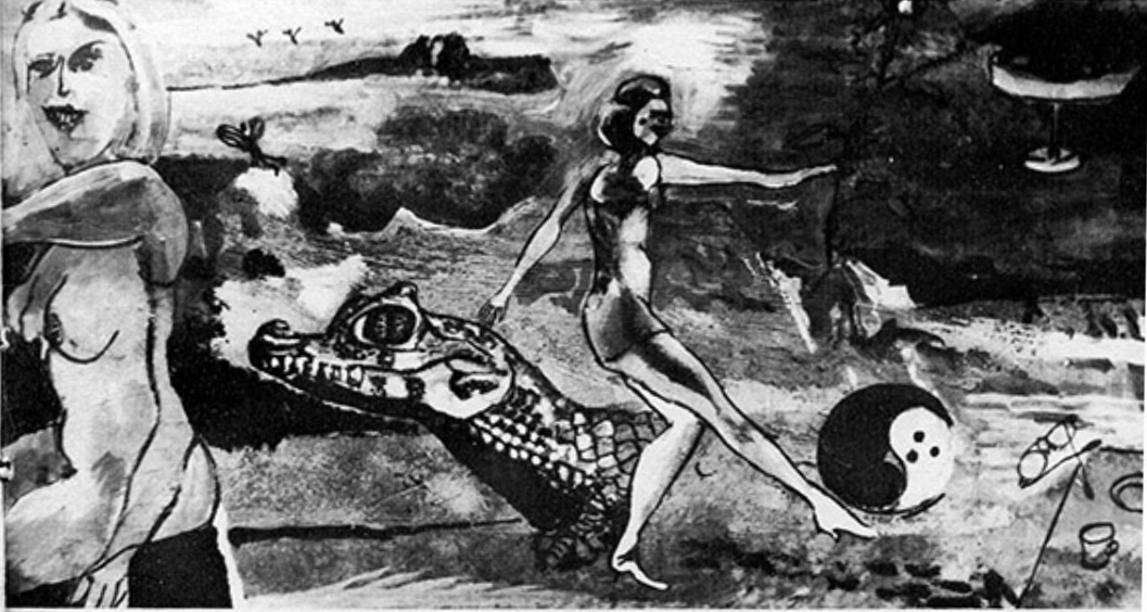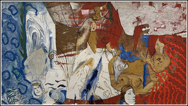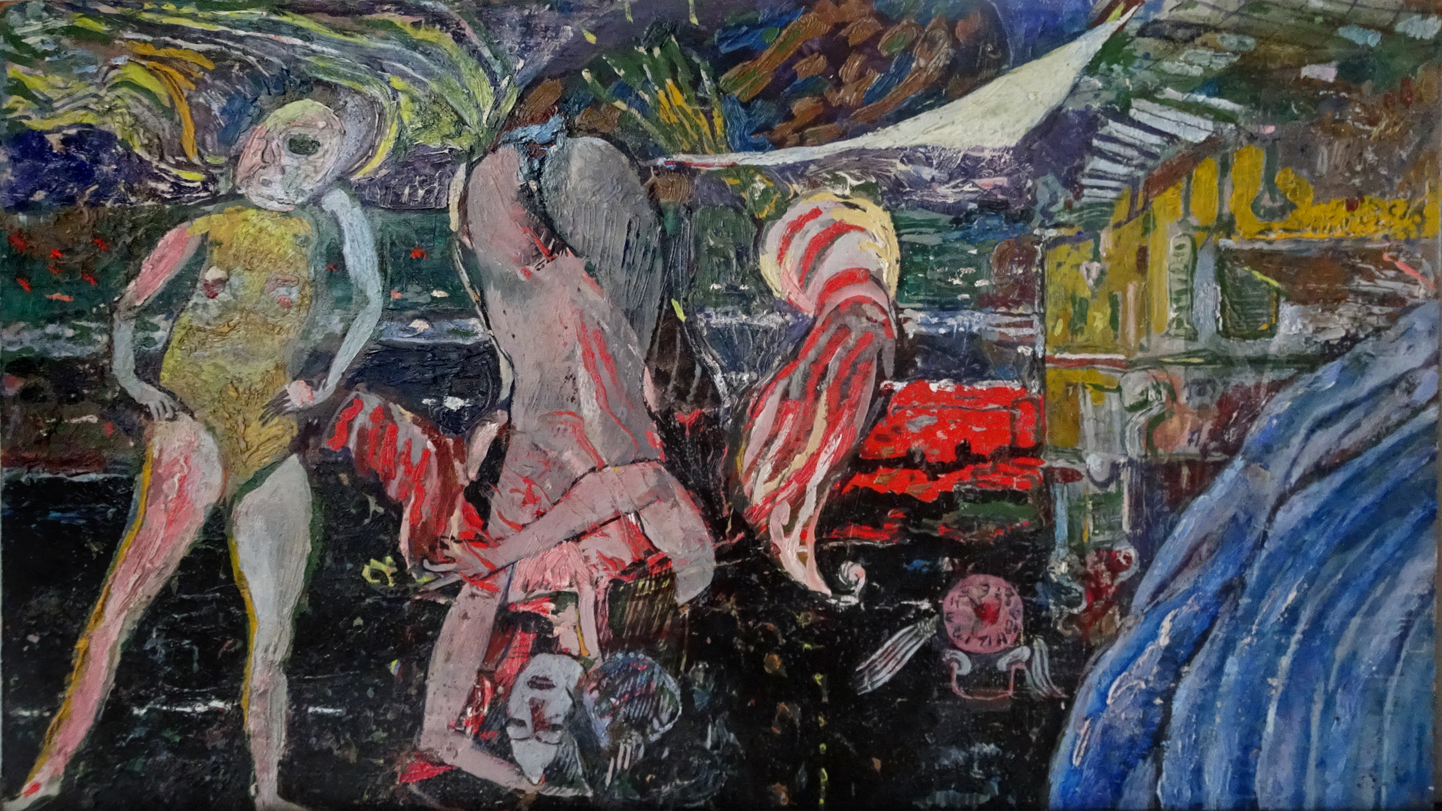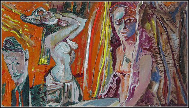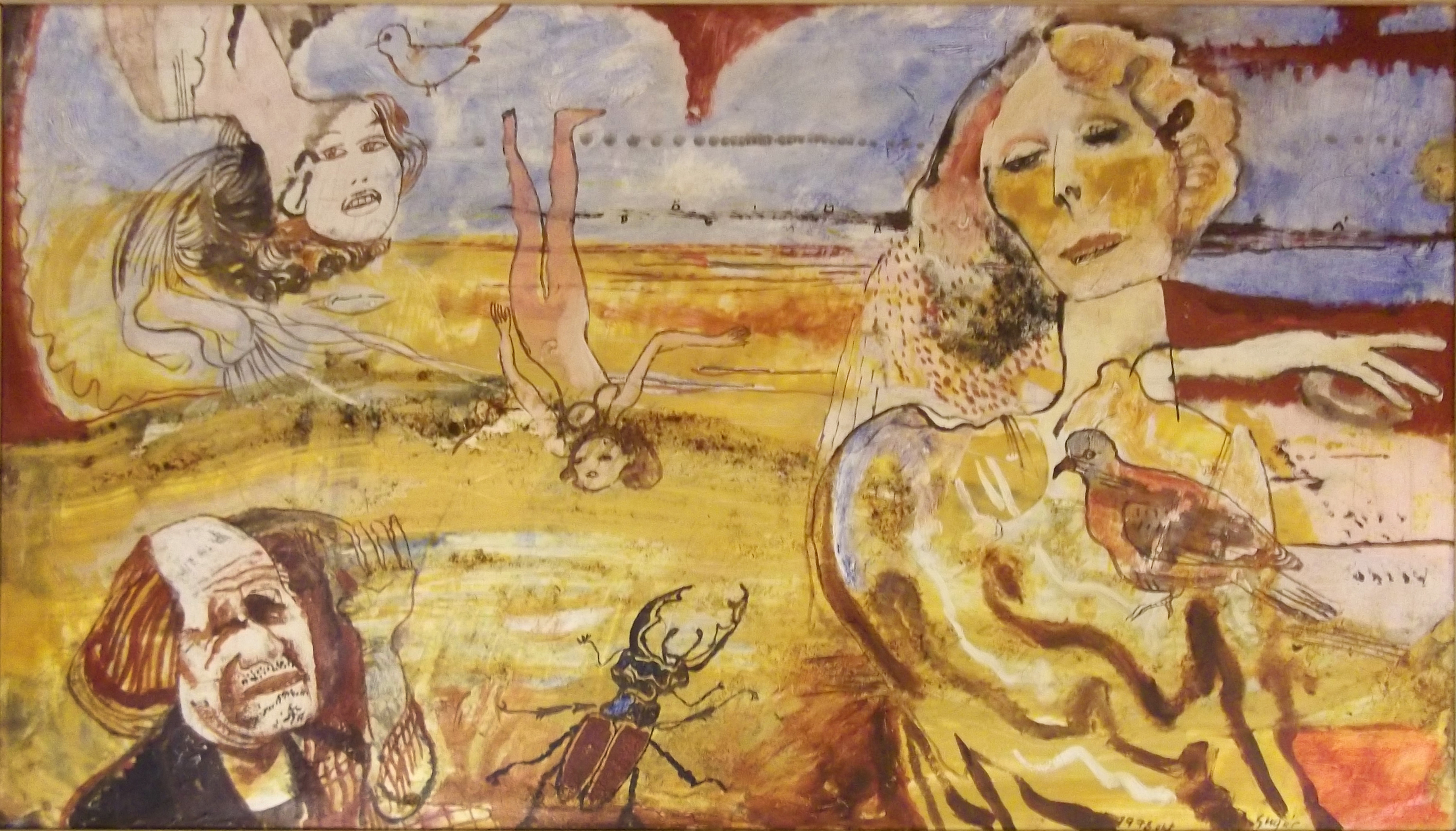 SU452 Vénusz születése olaj, farost 34x60 cm., 1975.// infó: Thanhoffer Imre tul. 2019.04..