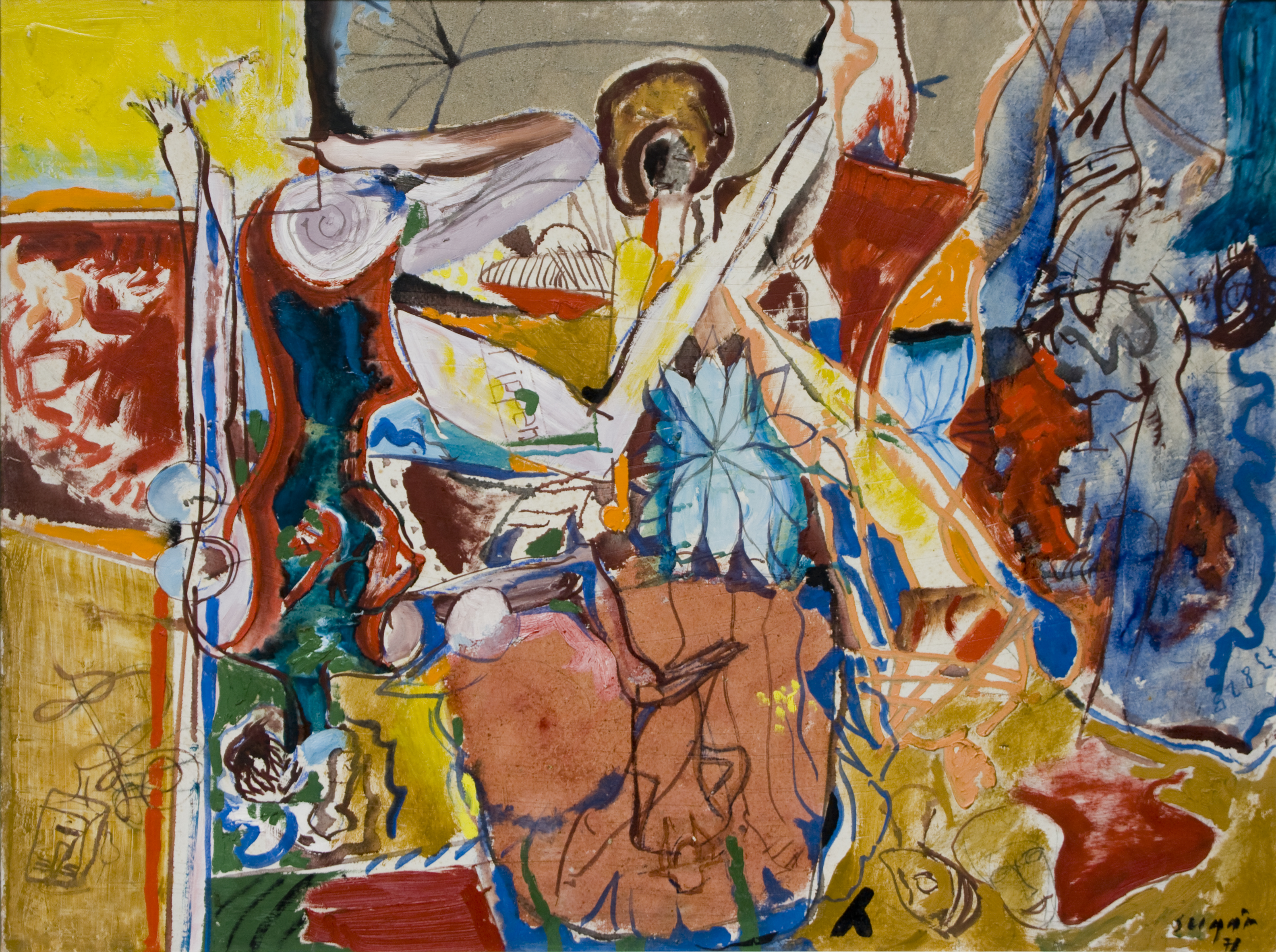 SU458 DANUVIUS olaj, tempera, farost, 90x120,5 cm, 1973. / Virág Judit Kortárs aukció 2019.11.
