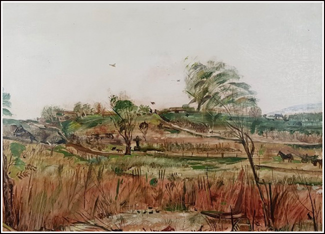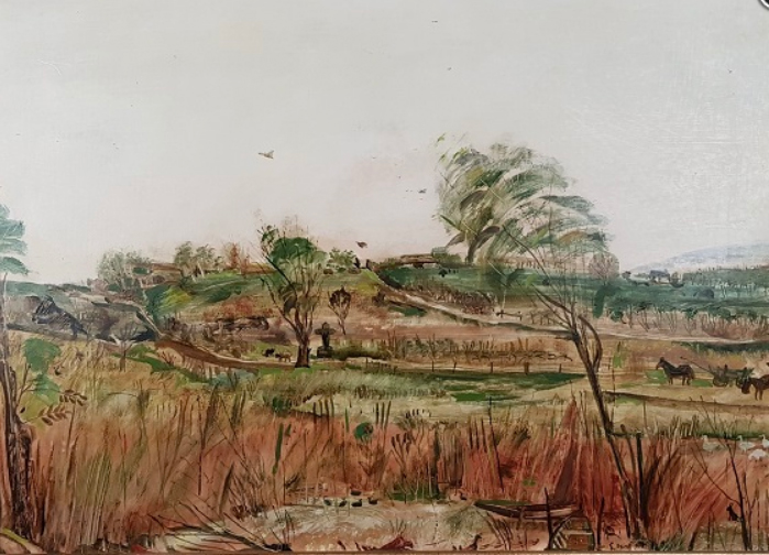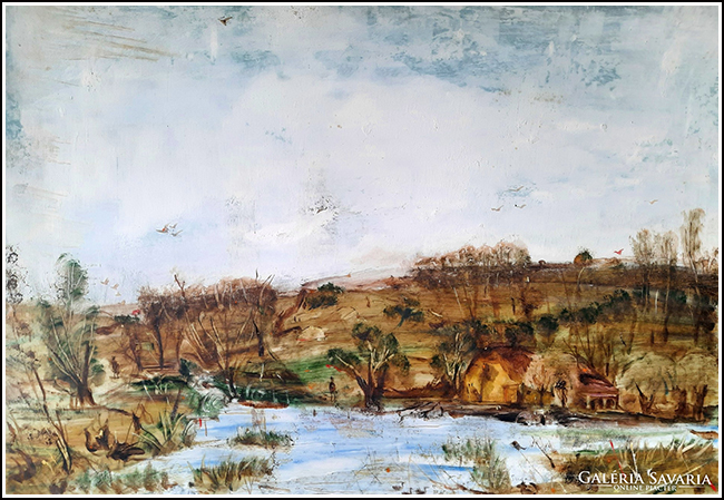 SU528 Táj, olaj, farost 60x80 cm. // Savaria Galéria 2024.06..